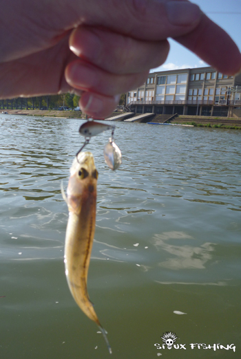 Nous avons donc poursuivi notre concours en abandonnant le pont et en pêchant minutieusement les herbiers et la limite du chenal. Vers 11 heures alors que je commençais à sortir l'arsenal spécifique pour le brochet (gros shad et divinator), Dams m'annonçait "POISSON" : une perche de 25.5 cm nous permettait de débloquer les compteurs. Pour ne pas prendre le risque de la perdre, nous n'avons pas chercher à la prendre en photo.
