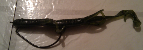 Ma préférence lorsqu'un poisson a été localisé est les worms en montage wacki. Cela me semble plus approprié car il suffit de le lancer à proximité du Bass et de laisser descendre doucement en limitant au maximum les animations. Généralement, un Bass actif n'y résiste pas.