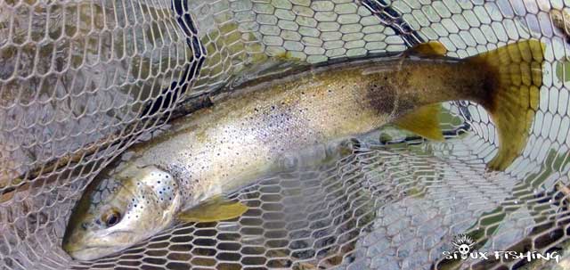 Mais fort heureusement, les truites sont aussi de la partie. Non loin du repas de midi, je reprends un nouveau poisson.