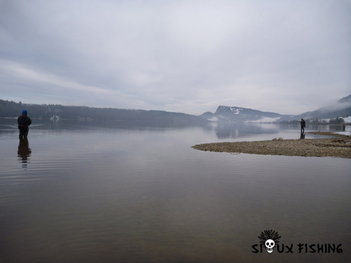 Le 18 décembre dernier, nous devions monter au Lac de Joux (en Suisse) pour profiter de l'ouverture de la pêche à la truite lacustre. Mais le lac de Joux est situé dans une vallée bien froide à une altitude de 1000 mètres. Il est très fréquemment gelé en hiver et se transforme en immense patinoire. La glace ayant recouvert le lac en ce début décembre, la sortie avait été annulé et remise à plus tard.