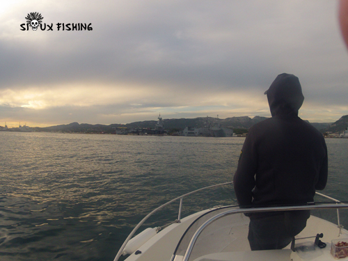 L'affaire est compliquée, les poissons sont peu actifs. Il faut dire que 15 jours de mistral consécutif ont contribué à refroidir les eaux : 17°C en proximité de la côte et 14°C en pleine mer ; une température digne du mois de février.