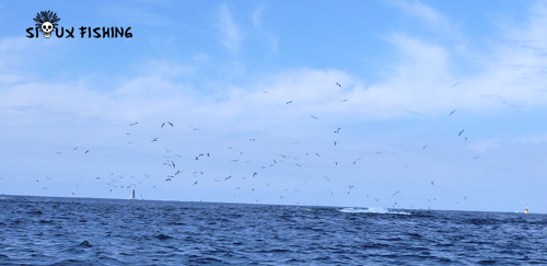 Le lendemain matin, je reprenais la mer pour une seconde sortie. Question météo, le soleil était de la partie, mais le vent était encore présent. Il s'était levé en milieu de matinée, juste après que je me sois dépêché pour rejoindre une chasse située assez loin de la côte. Chasse sur laquelle j'arrivais trop tard, l'activité des pélamides et autres poissons chasseurs étant terminée.