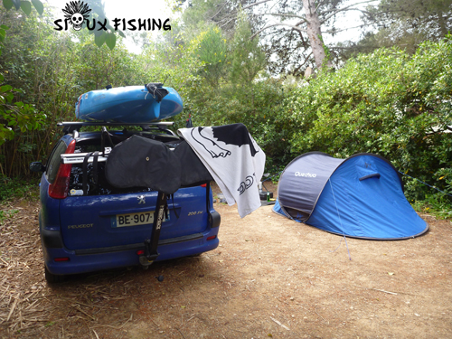 Pour ce nouveau séjour en méditerranée, je m'étais installé, sur les conseils de Fred, dans un camping situé sur la commune de Six-Four-les Plages. Ainsi, j'étais à proximité d'un ensemble de spots favorables et propices aux chasses des pélamides ; l'intérêt étant de ne pas avoir à couvrir de trop longues distances en kayak avant d'arriver sur des secteurs d'intérêts.