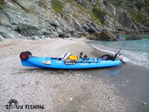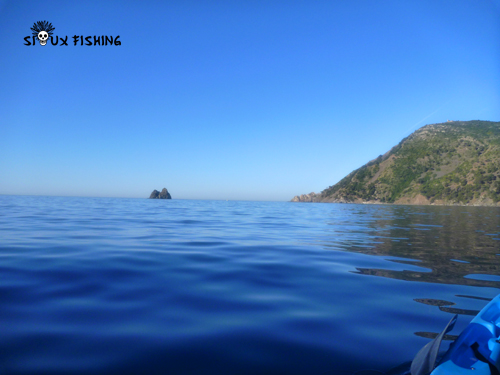 Pour la dernière matinée, je changeais de secteur pour me rendre plus à proximité du Cap Sicié. J'embarquais sur une petite plage bien tranquille et mignonne et profitais une dernière fois d'une mer d'huile. C'était aussi l'occasion pour moi et mon kayak de saluer les deux frères (2 roches affleurants non loin du Cap Sicié). Au cours de cet matinée, j'ai pris les plus gros sévereaux du séjour, mais malheureusement je n'ai pas rencontré les bonites. En discutant avec un autre kayakiste, il semblait que ces dernières se soient volatilisées soudainement ces dernières jours. Ceci me sera confirmé par Fred à l'issue de mon séjour (http://les2frerespechesportive.com/).