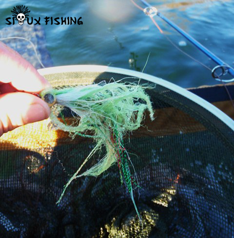 Pour le matériel, je vais utiliser une canne en 9 pieds soie # 9 avec une soie de 8 plongeante (S2). Le bas de ligne lui, est constitué d’un mètre de nylon 45 centièmes et d’une pointe d’un mètre de fluoro en 60 centièmes. Facile ! Concernant les leurres, ce sera des streamers maison en tout genre de différentes tailles, couleurs et plombées. Je privilégierai quand même les plus dodus ;).