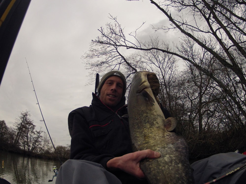 Ils ne font pas que se promener puisque rapidement, j'encaisse une grosse châtaigne qui se conclut après un petit combat de 2 à 3 minutes par la prise d'un petit silure. Je ne m'attendais pas à ça, mais je dois dire que je suis assez heureux de les retrouver en cette fin novembre.