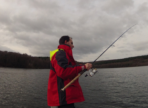 Arrivé sur le lac, quelques barques sont déjà à l'eau. Il fait certes très doux, mais le vent souffle en rafale. Ces conditions ne simplifient pas la pêche. De temps à autre nous essayons de pêcher en dérive mais parfois nous sommes contraint de nous encrer.