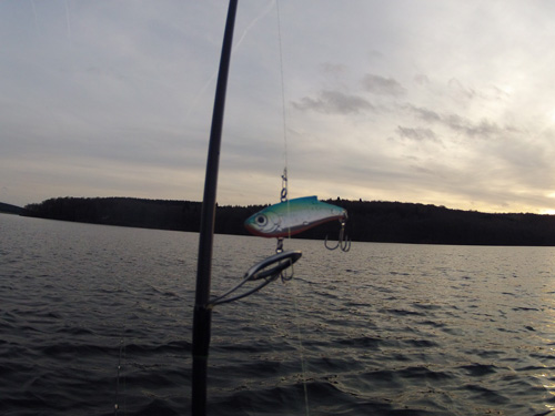 Nous pêchons en verticale et en linéaire principalement aux leurres souples parfois à la lame ou au manié. Au cours de la matinée, pas un poisson ne se manifeste. La pêche s'annonce dur très dur.