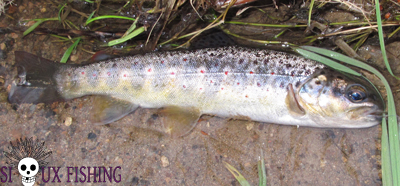 Tous ces petits poissons nous occupent un bon moment, mais les truites semblent absentes en cette après midi. N'ayant pas encore capturé une truite du week-end, nous décidons donc de partir sur un tout petit ruisseau où les farios sont abondantes.