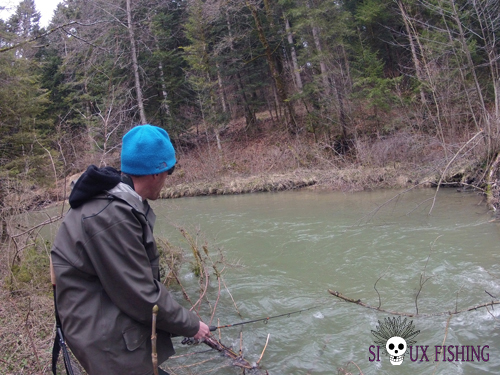 Après 45 minutes de pêche, je n'ai toujours pas senti le moindre toc. Pourtant les postes sont alléchants. Il doit bien y avoir quelques truites.