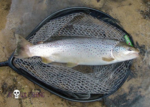 De retour à la voiture, j'essaie quelques derniers secteurs. Une truite d'une trentaine de centimètres succombe à un griffon de Megabass.