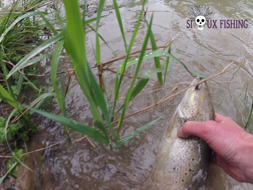 Les vitesses sont fortes et le bouillon est lourd et incessant. Pour couronner le tout, les eaux sont teintées. Seule la berge et ses 5 premiers mètres sont pêcheables. Ces conditions ne sont pas si déplaisantes que cela et je pense pouvoir faire au moins un poisson. Je pense même avec une certaine prétention que c'est un jour pour les grosses. Après restera à les maitriser dans un courant si puissant...