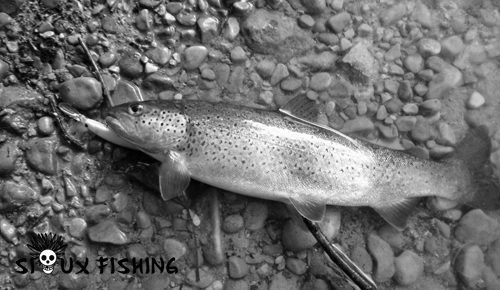 Sur un premier courant, une truite suit un petit D Incite (poisson nageur Smith) jusqu'à mes pieds.
