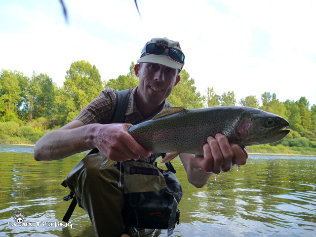 Quelle drôle de rencontre : une truite arc-en-ciel.