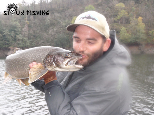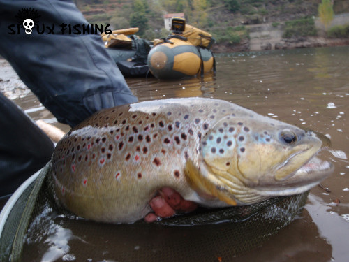 Quelques temps après ses recherches et son passage sur le site des Sioux, Thibaut s'est retrouvé sur la lac de Villefort pour l'ouverture de la pêche à la truite. Là, au cours d'une très belle sortie, il a pu capturer quelques jolis salmonidés, dont une grosse truite présentant l'écotype lacustre et une très grosse truite fario de 75 cm à la robe magnifique.