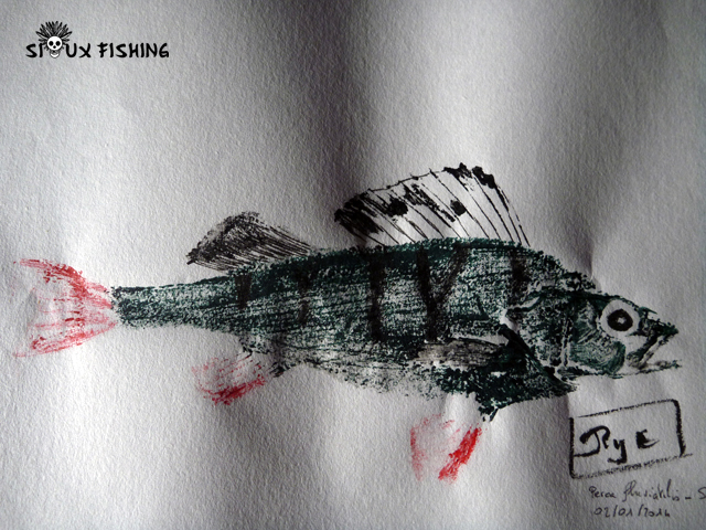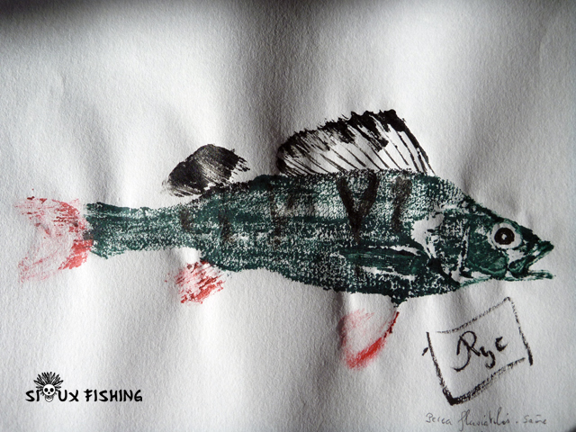 Avec ces écailles rugueuses, la perche est un poisson idéal pour réaliser des gyotaku (empreinte de poisson à l'encre de chine). Sa nageoire dorsale si particulière confère à se poisson une très jolie morphologie. Voici une petite série d'empreintes réalisées à l'automne dernier.