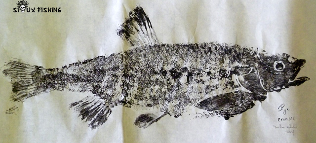 Ayant récupéré lors de pêches d'échantillonnages scientifiques un gros chevesne, n'ayant pas supporté les manipulations de captures et de mesures, j'ai décidé d'en réaliser son empreinte sur papier "façon gyotaku".