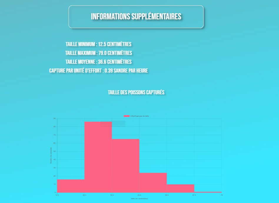 Cela nous permettra bien sur d'acquérir des informations précieuses sur les populations de poissons carnassiers, mais vous aurez aussi un outil qui vous permettra de suivre vos captures, de calculer vos propres statistiques. Vous aurez aussi accès aux résultats des enquêtes qui seront publiées après analyses des données.