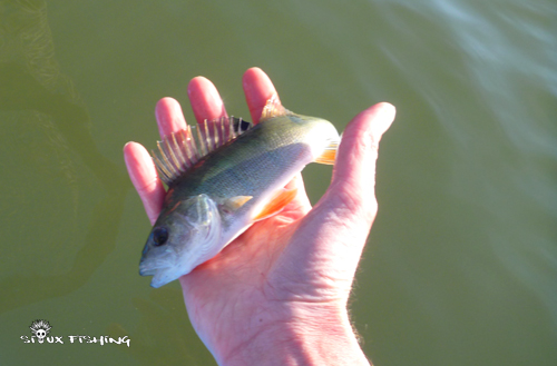 Au final ce sont deux petites perches, une à peine maillée et une minuscule qui se sont laissées tenter par mon montage drop shot. Pas de quoi s'enflammer.