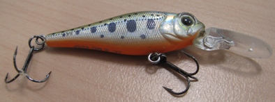 Voilà un leurre assez déconcertant, que j'ai mis du temps à utiliser. Mes premiers essais ont eu lieu en Saône sur les perches et à mon grand étonnement il a été particulièrement efficace. Récemment j'ai pris l'habitude de l'utiliser plus régulièrement lors de mes sorties truite et les résultats ne se sont pas fait attendre.