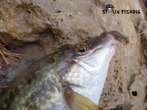 Ces petites séances ne sont pas très concluantes. Les touches sont souvent nombreuses mais les résultats bien maigres. Heureusement que les petites rascasses se prêtent au jeu. Elles me sauvent bien souvent de la bredouille. Quelques poissons de roche à priori de la famille des labres viennent aussi compléter le panel bien maigre des prises