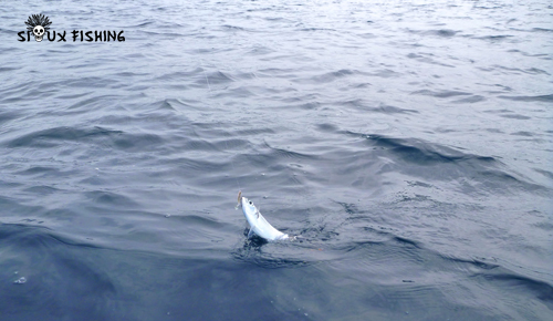 Le lendemain matin, je reprenais la mer pour une seconde sortie. Question météo, le soleil était de la partie, mais le vent était encore présent. Il s'était levé en milieu de matinée, juste après que je me sois dépêché pour rejoindre une chasse située assez loin de la côte. Chasse sur laquelle j'arrivais trop tard, l'activité des pélamides et autres poissons chasseurs étant terminée.