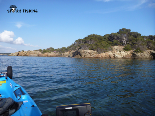 Pour la dernière matinée, je changeais de secteur pour me rendre plus à proximité du Cap Sicié. J'embarquais sur une petite plage bien tranquille et mignonne et profitais une dernière fois d'une mer d'huile. C'était aussi l'occasion pour moi et mon kayak de saluer les deux frères (2 roches affleurants non loin du Cap Sicié). Au cours de cet matinée, j'ai pris les plus gros sévereaux du séjour, mais malheureusement je n'ai pas rencontré les bonites. En discutant avec un autre kayakiste, il semblait que ces dernières se soient volatilisées soudainement ces dernières jours. Ceci me sera confirmé par Fred à l'issue de mon séjour (http://les2frerespechesportive.com/).