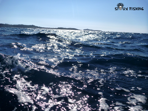 Pour ne pas changer, je rembarquais le lendemain matin de très bonne heure, pour cette fois-ci profitais d'une mer d'huile : une véritable piscine qui s'offrait à moi pour la matinée. La matinée fut agrémentée par quelques petits sévereaux dont des doublés, une jolie oblade, des paysages et des décors vraiment chouettes, mais toujours pas l'ombre d'une bonite en vue.
