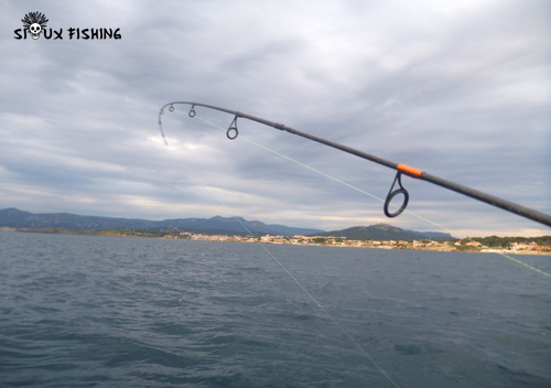 L'après midi fut très calme. Je n'attrapais qu'un petit denti le long des roches des Embiez et quelques petits sévereaux. La perturbation météo du soir apportait des couleurs sombres aux eaux de la grande la Bleue.