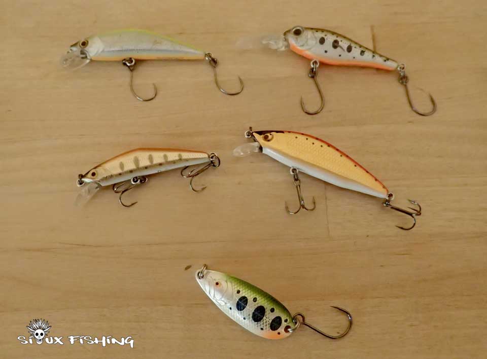Quelques poissons nageurs se sont distingués au cours de cet après midi : (D Contact 50, D Compact, JADE MD 43Sp de la marque Smith et EMISHI 50 et cuillère ondulante Custom Spoon de la marque ITO CRAFT).