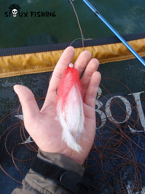 Pour le matériel, je vais utiliser une canne en 9 pieds soie # 9 avec une soie de 8 plongeante (S2). Le bas de ligne lui, est constitué d’un mètre de nylon 45 centièmes et d’une pointe d’un mètre de fluoro en 60 centièmes. Facile ! Concernant les leurres, ce sera des streamers maison en tout genre de différentes tailles, couleurs et plombées. Je privilégierai quand même les plus dodus ;).
