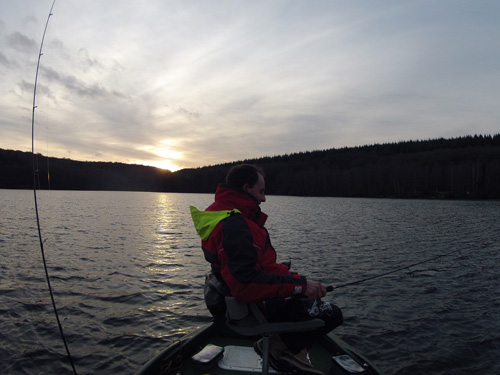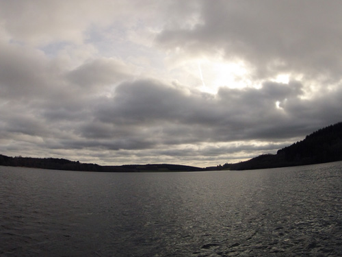 Arrivé sur le lac, quelques barques sont déjà à l'eau. Il fait certes très doux, mais le vent souffle en rafale. Ces conditions ne simplifient pas la pêche. De temps à autre nous essayons de pêcher en dérive mais parfois nous sommes contraint de nous encrer.