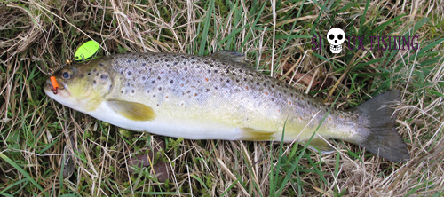 Sur un plat profond et courant je trouve le moyen de décrocher deux fois la même truite (de déversement). Je commence à m'interroger car cela fait beaucoup de décrochés. J'ai encore du mal à pêcher avec mes poissons nageurs montés sur hameçon simple sans hardillon, mais cela viendra...