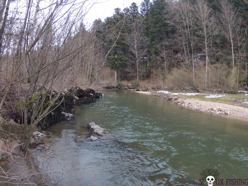 Alors qu'en ce début de saison, il est judicieux de ratisser lentement, j'ai pêché toute l'après midi en "power fishing". Avec l'eau froide de la fonte des neiges, sur un parcours que je ne connais pas, je me suis finalement laissé peu de chance de prendre du poisson.