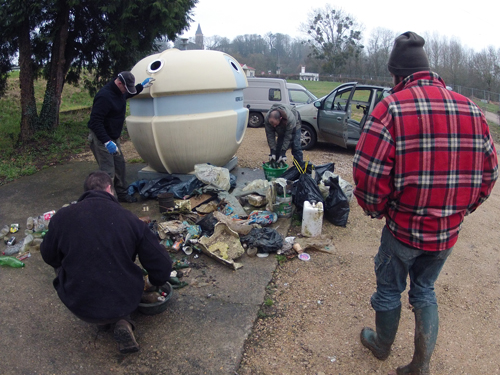 A 11h30, tout le monde se retrouve devant le camping pour trier les déchets et les emporter à la déchetterie.
