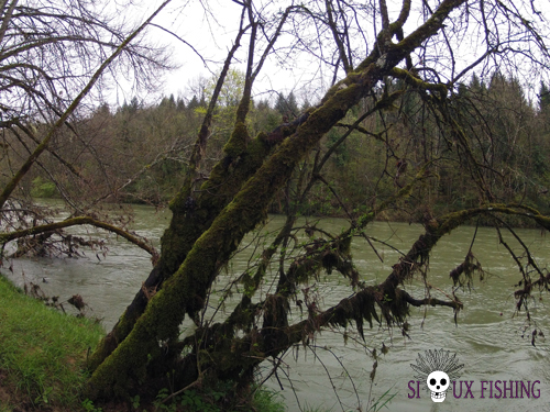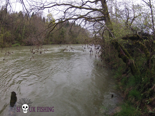 Les vitesses sont fortes et le bouillon est lourd et incessant. Pour couronner le tout, les eaux sont teintées. Seule la berge et ses 5 premiers mètres sont pêcheables. Ces conditions ne sont pas si déplaisantes que cela et je pense pouvoir faire au moins un poisson. Je pense même avec une certaine prétention que c'est un jour pour les grosses. Après restera à les maitriser dans un courant si puissant...