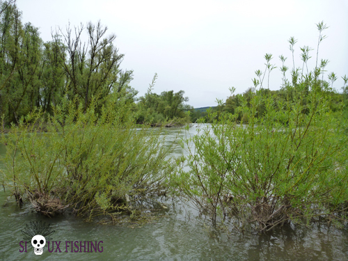 Il y a à peine moins de deux semaines, j'ai entrepris de découvrir un nouveau secteur sur lequel en très peu de temps (pluie oblige), j'ai attrapé un poisson malgré des conditions de pêche plus que limite (niveau des eaux importants).