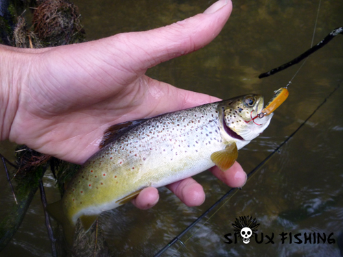 Rapidement je prends une première truite sur un petit leurre Duo Spearhead Ryuki 45 S (couleur 34).
