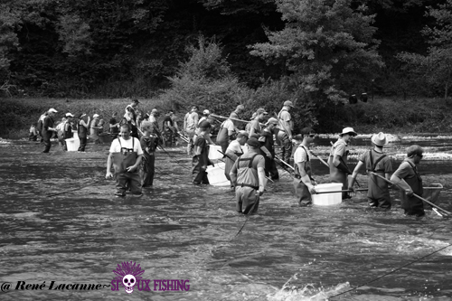 Ces pêches nécessitent des moyens humains conséquents pour échantillonner toute la largeur de la rivière. Pour exemple, nous étions plus de 55 personnes dans l’eau ce vendredi 26 juillet 2013 pour échantillonner le fameux parcours de la Piquette à Lizine. Pour mener à bien ces grandes campagnes d’échantillonnage, sont conviés de nombreux personnels de la faculté de Besançon, de bureau d’études, d'associations de pêches locales, de l'Agence de l'Eau Rhône Méditerranée et Corse... et de Fédérations de pêche (Doubs, Territoire de Belfort, Jura, Bas Rhin, Saône-et-Loire, Seine et Marne, Loiret, Yonne, Ain …)