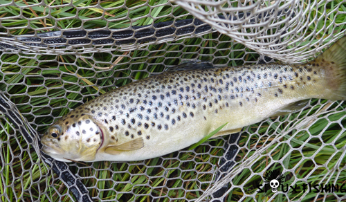 Petite truite fario capturée avec un petit kozo de la marque Harima