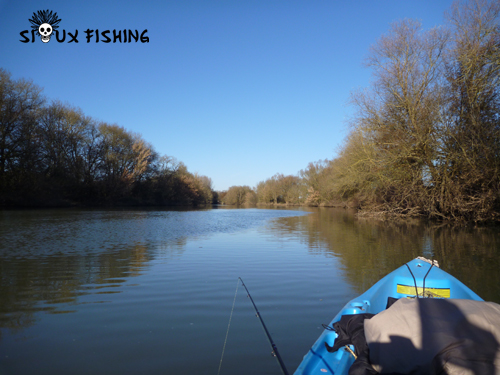 Arrivé sur site, je suis tout heureux de retrouver la rivière. Pour une fois, elle semble calme et paisible. Au programme de l'après midi, j'ai prévu quelques dérives en pêche verticale à la recherche des sandres.
