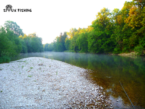 Arrivée sur la rivière, je profite de la douceur matinale et de la légère brume qui se lève. Il y a pas 2 minutes que je suis en poste que déjà j'aperçois quelques gros gobages. Tout ceci m'a l'air prometteur.