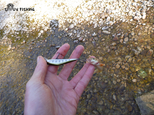 Rapidement je pique une premier poisson sur la queue du courant. Ce n'est pas gros mais bien nerveux. Sur le même poste je rate dans la foulée un deuxième poisson.