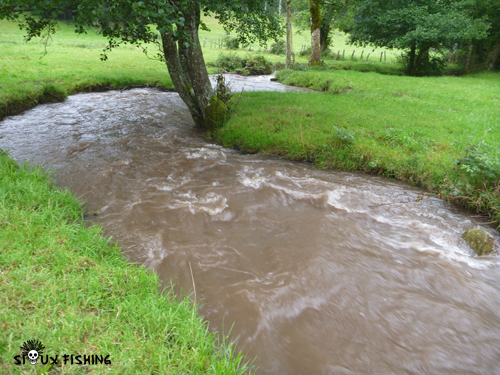 Mais rapidement, nous constatons que les eaux deviennent boueuses. Les débits sont de plus en plus important au point qu'il faut déposer les armes et changer de spot en espérant que ça aille mieux...