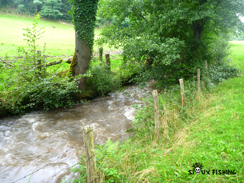 C'est d'abord sur la rivière Botoret en amont de Chauffailles (71) que nous nous rendons. Les eaux sont légèrement teintées mais pas trop fortes. Les gros nuages que nous avons vus sur les monts alentours, n'ont peut- être pas trop retenu les pluies.