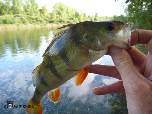 Dans un grand plat courant, ce sont d'abord deux perches qui viennent me rendre visite. A la première, j'ai vite compris que je n'avais pas affaire à une truite. La défense n'est pas la même. Mais qu'importe, c'est en relançant au même endroit que j'ai la joie de capturer la seconde; puis plus rien...