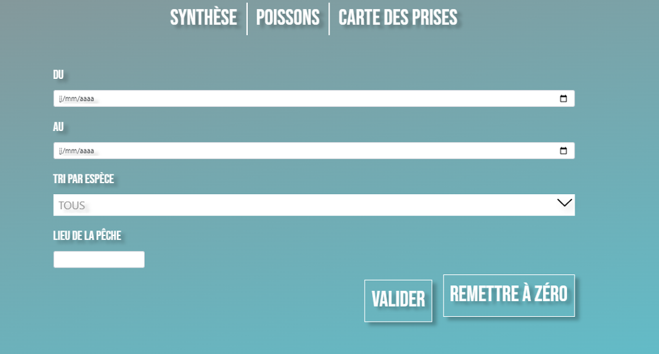 Pour faciliter la mise en place de la collecte des informations et pour permettre aux pêcheurs d'avoir un suivi de leurs propres captures, nous avons donc créé un site internet de carnet de capture. Il est accessible à la page : www.fishcapture.fr